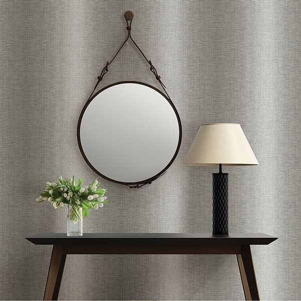 This wallpaper has a subtle ombre effect that creates undulating stripes on a wall. In a soft grey, this linen print is timeless. Stardust is a non woven, unpasted wallpaper.