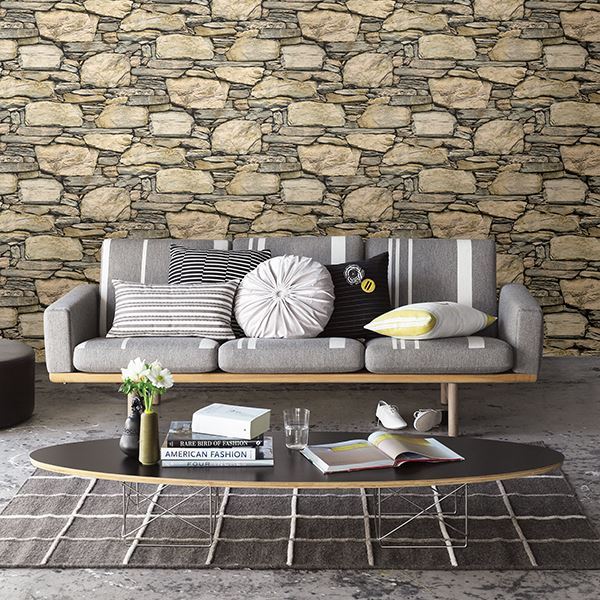 This stone wallpaper is the perfect mix of modern and classic. The ancient art of stone masonry is celebrated with the ease of a wallpaper. Modern printing techniques give this design a photorealistic look.
