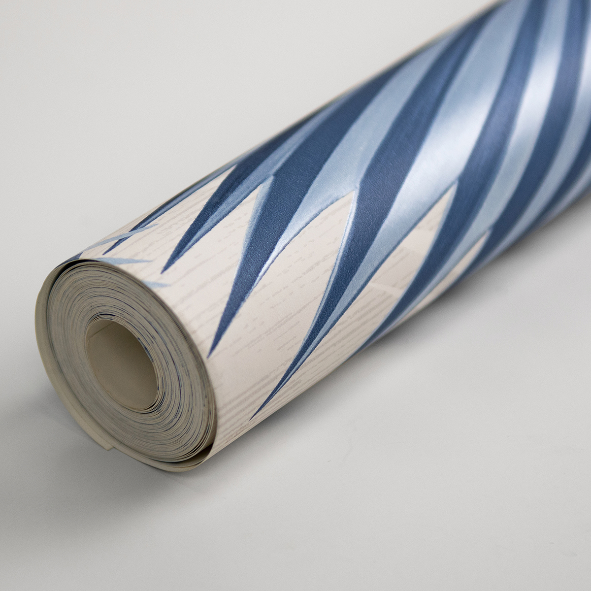 Enjoy a lush rainforest in cool coastal hues with this botanical wallpaper! The cream background is detailed with lined taupe shadows of the palm leaves, the fronds themselves richly painted in blue hues and dusted with a pearlescent sheen. Summer Palm is an unpasted, gravure acrylic coated wallpaper.