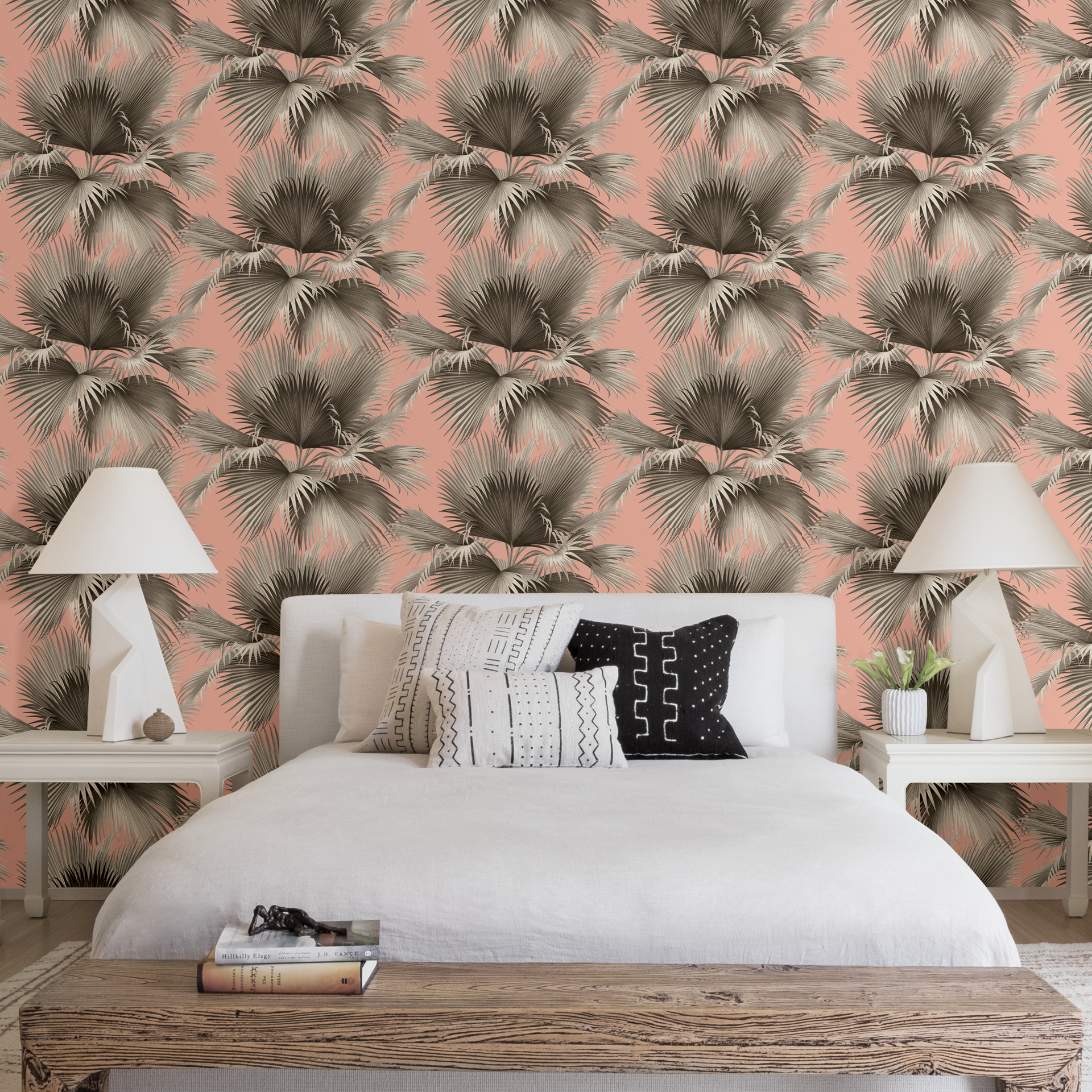 Summer Palm Blush Tropical Wallpaper