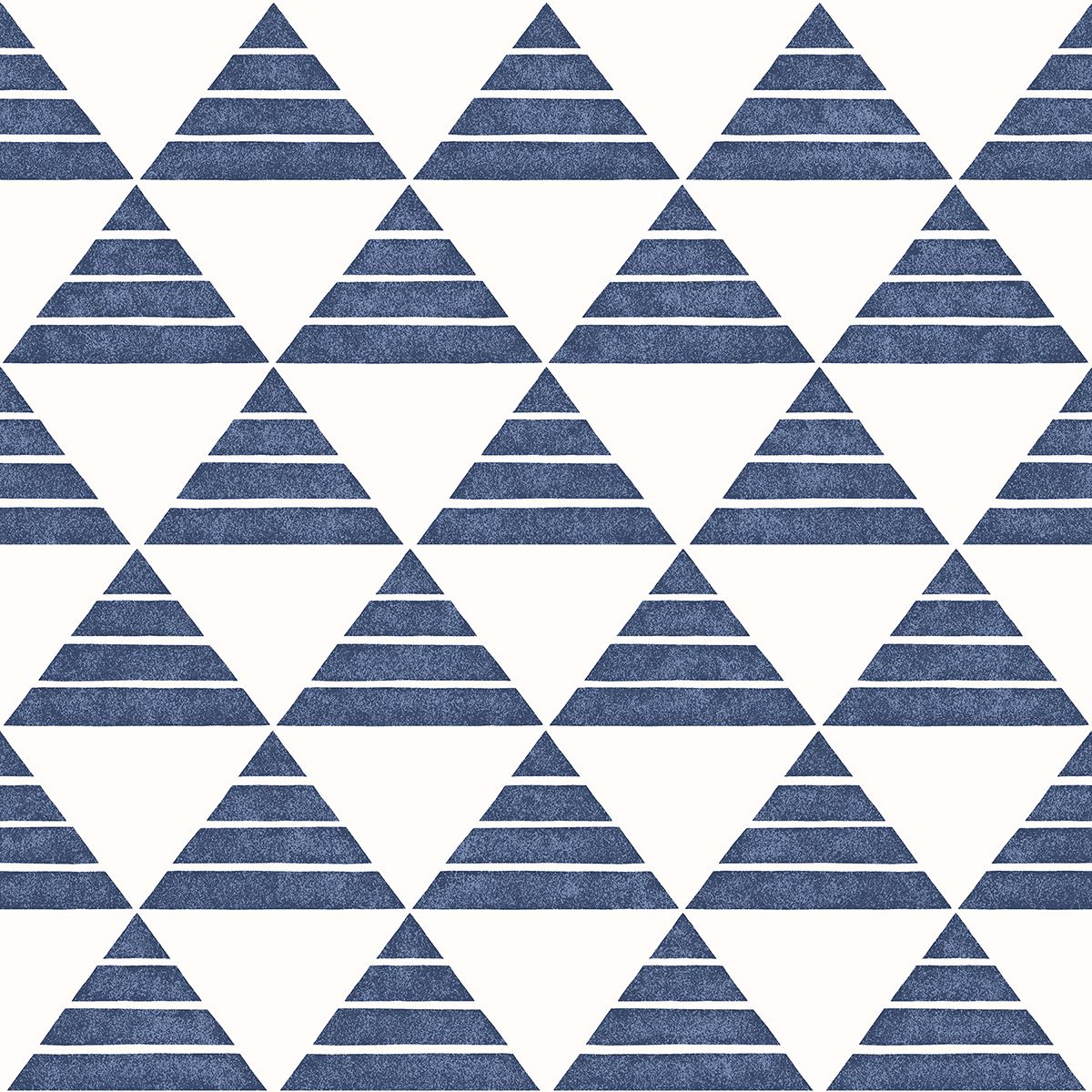 This indigo and white wallpaper has a unique triangle print. A distressed effect and split pattern adds a modern style to this geometric design.