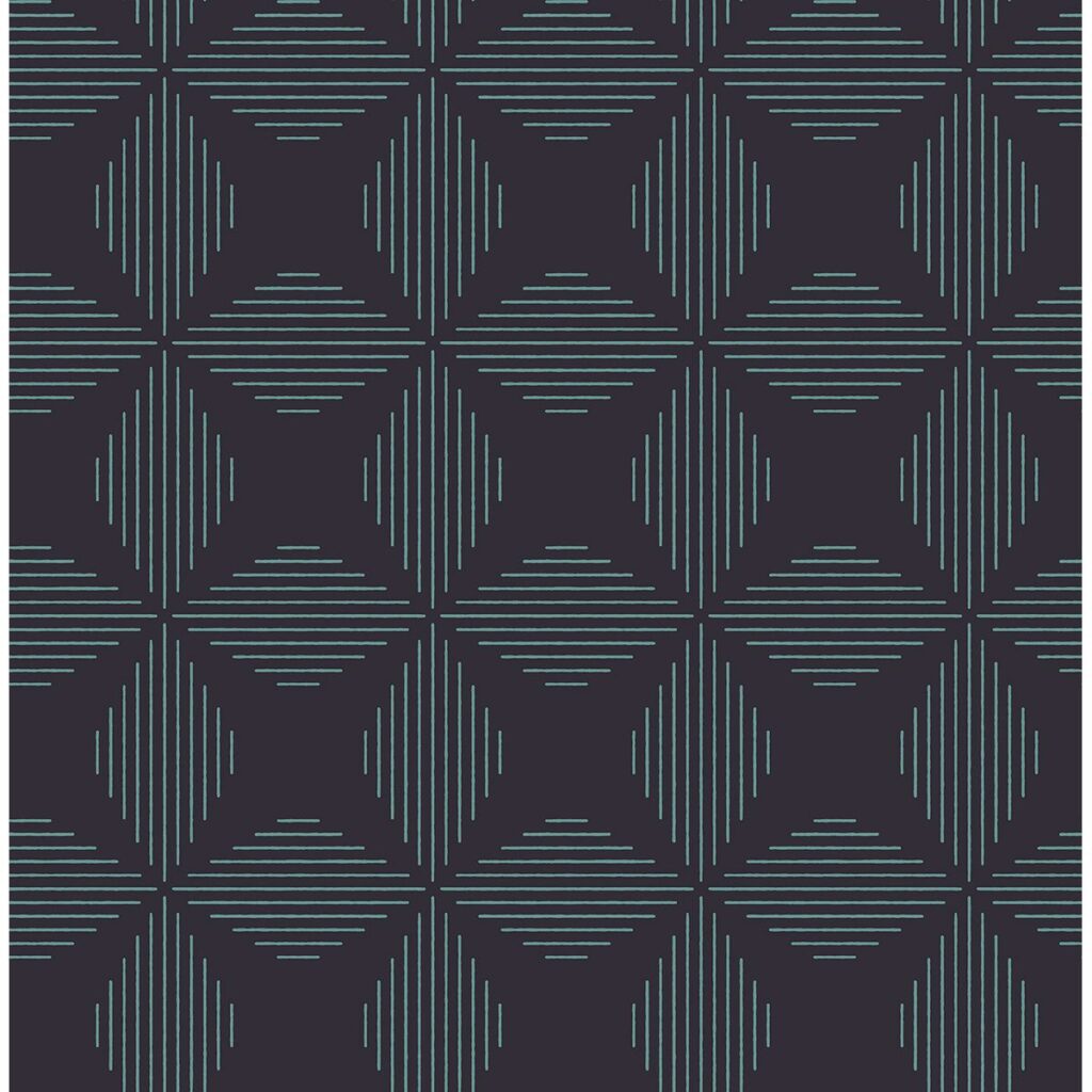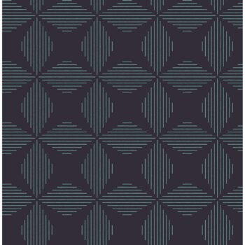 A navy backdrop accentuates the teal lines that comprise this unique diamond geometric. Its chic and modern design will make a bold statement in any room. Telestar is an unpasted, non woven wallpaper.