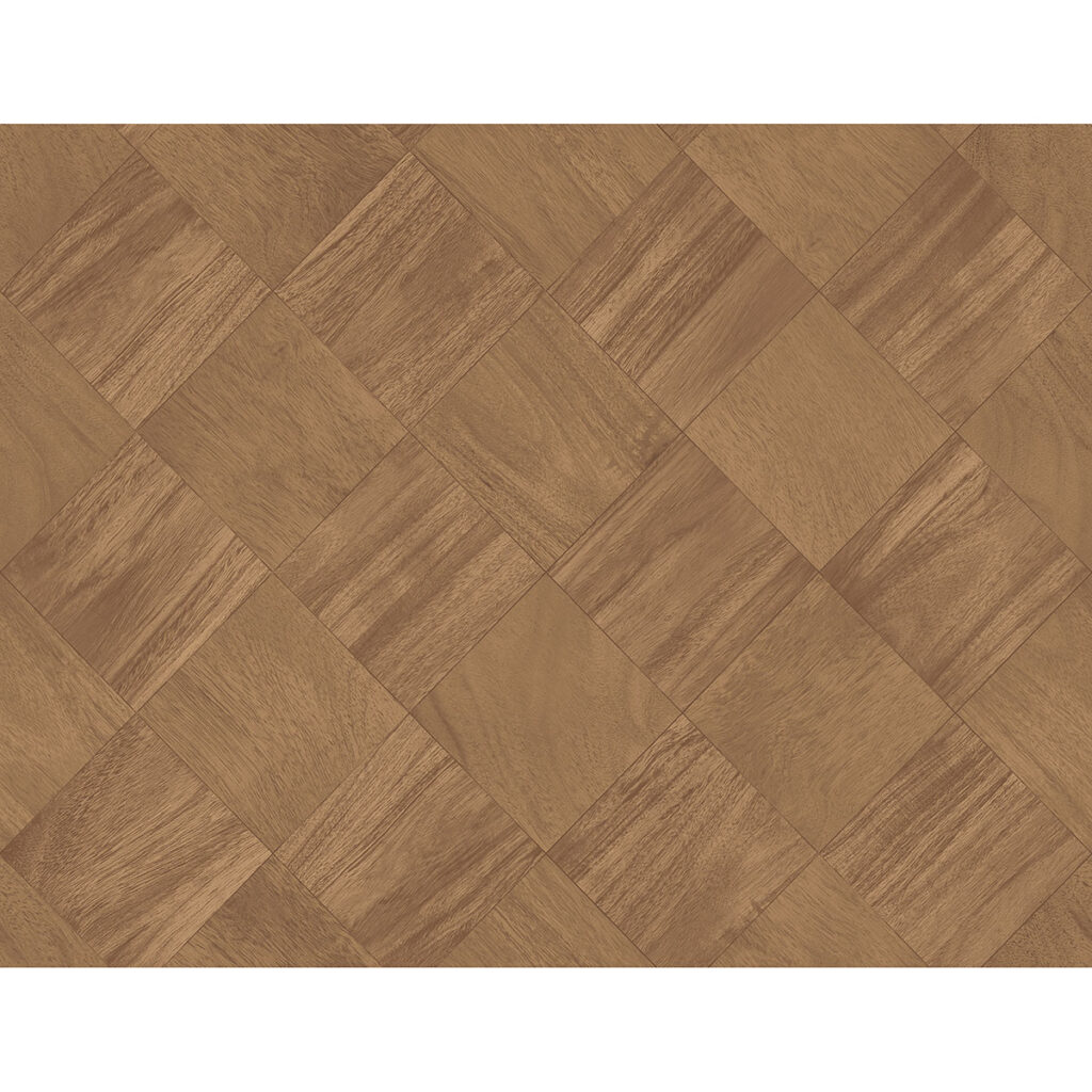 Elevate your room with the classic elegance and ambiance of this wooden checkerboard design. The square tiles alternate between two rich hues of aged chestnut, each tile accented with woodgrain detailing. Thriller is an unpasted, vinyl wallpaper.