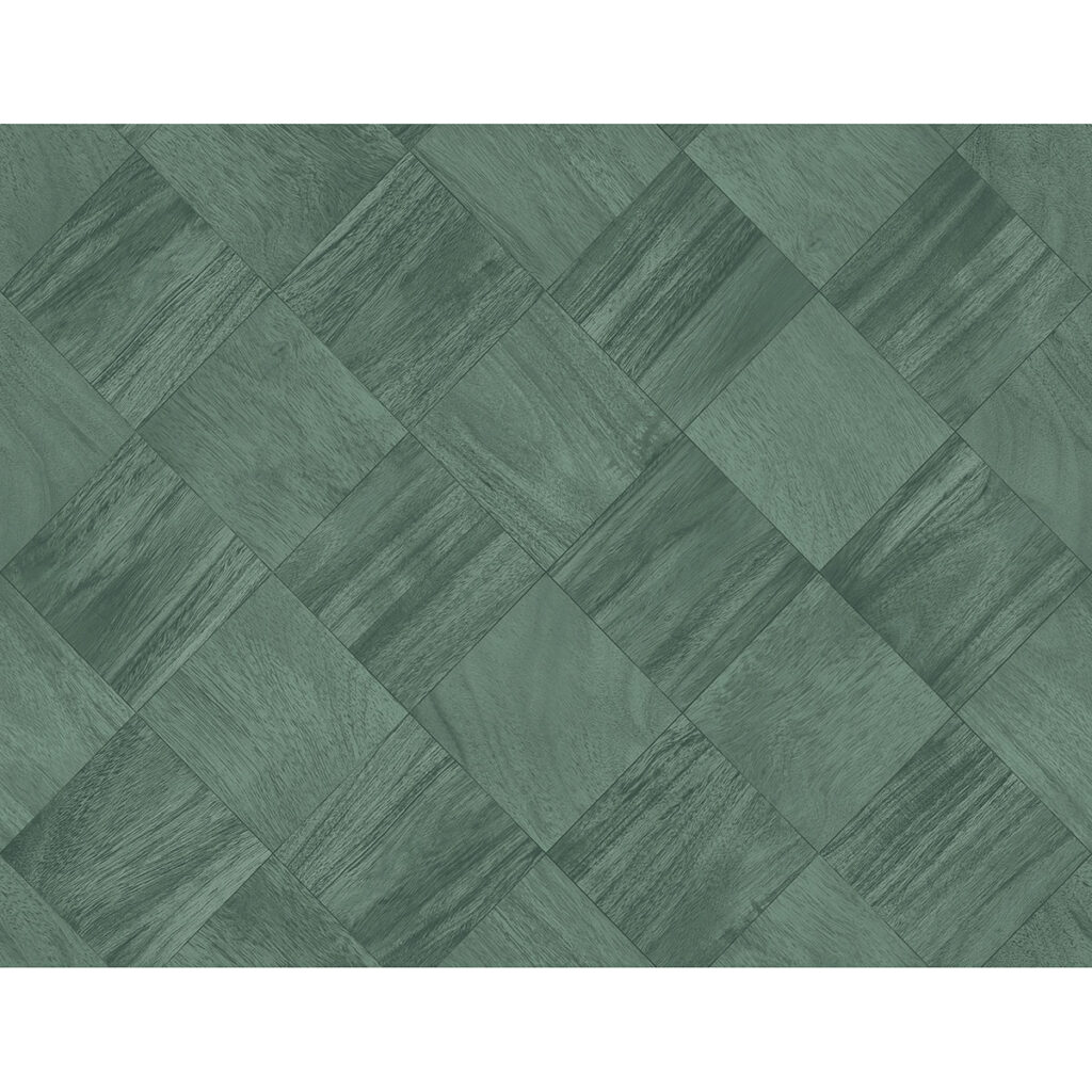 Fuse rich color with the classic sophistication of checkerboard design with this wallpaper! The square tiles are embellished with woodgrain detailing and alternate between two hues of deep emerald green. Thriller is an unpasted, vinyl wallpaper.