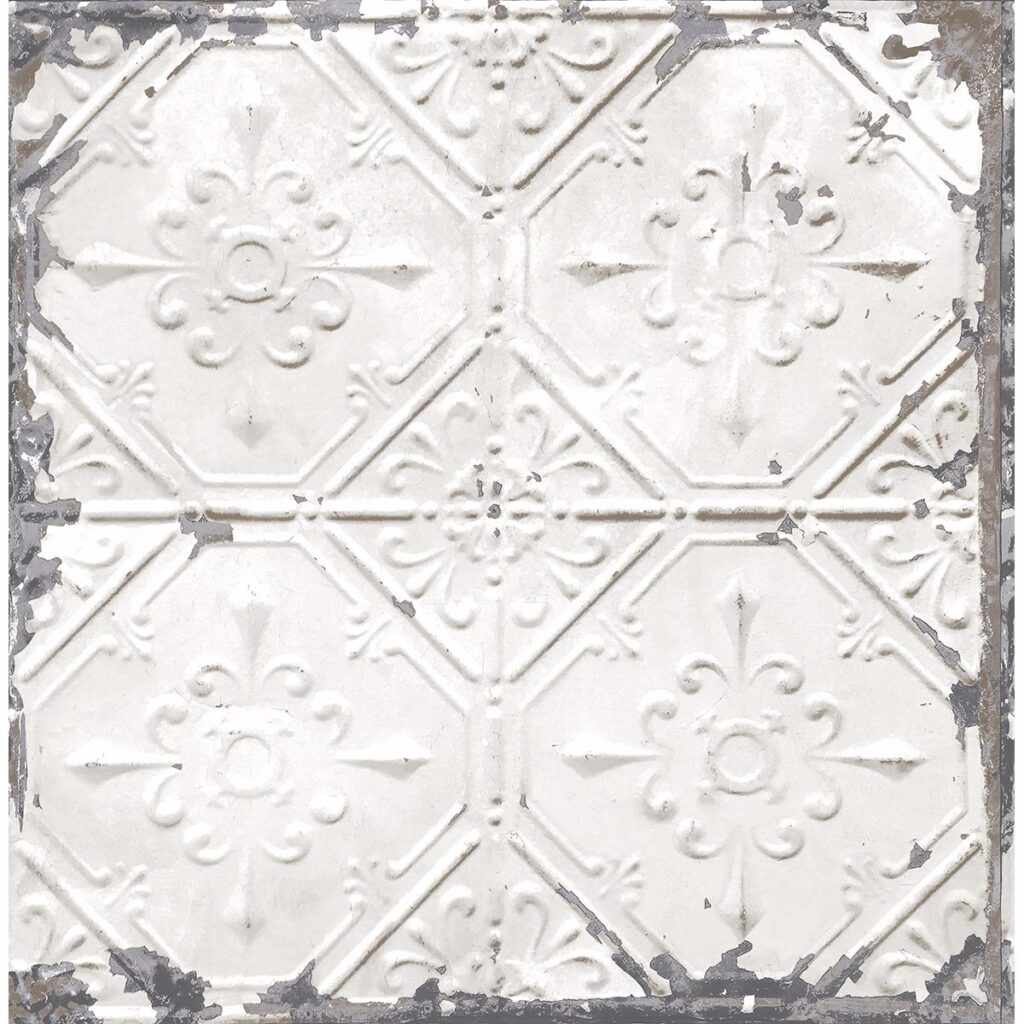 Celebrate the beauty of vintage finishes with this unique tin ceiling wallpaper. The tiled design pops in a bright white shade while silver metallic accents give a realistic look.