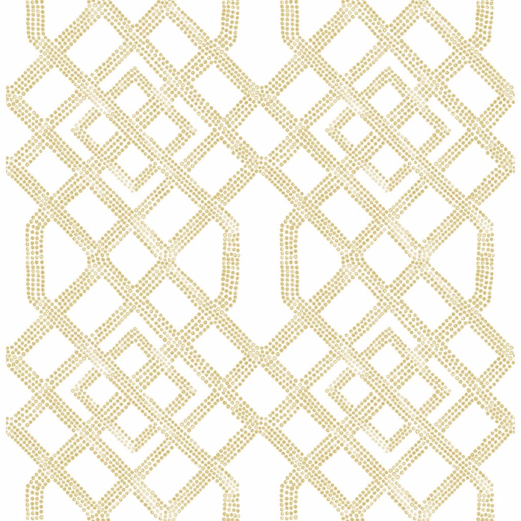 A classic trellis print with an artistic flair, this geometric wallpaper is comprised of hundreds of painterly dots. Beige and white hues lend to its versatile style. Traverse is an unpasted, non woven wallpaper.
