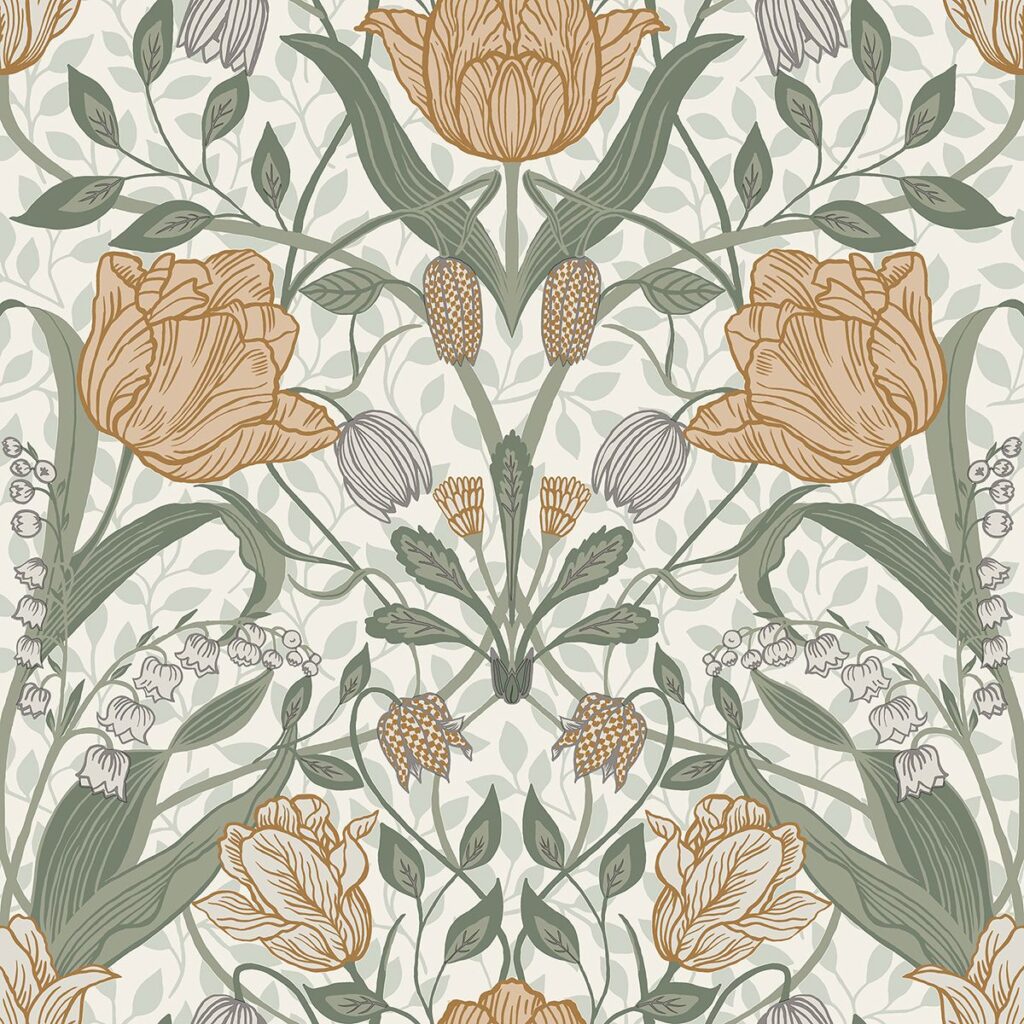 Tulipa Green Floral Wallpaper