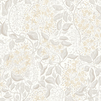 Celebrate the delicate beginnings of spring with this botanical wallpaper. The illustrative design features winding, leafy vines sporting delicate blooms and diminutive berries, all inked in shades of sandy beige and light grey against white. Turi is an unpasted, non woven wallpaper measuring 20.9 inches wide by 33 feet long, covering approxiamately About 57.5 square feet square feet per roll