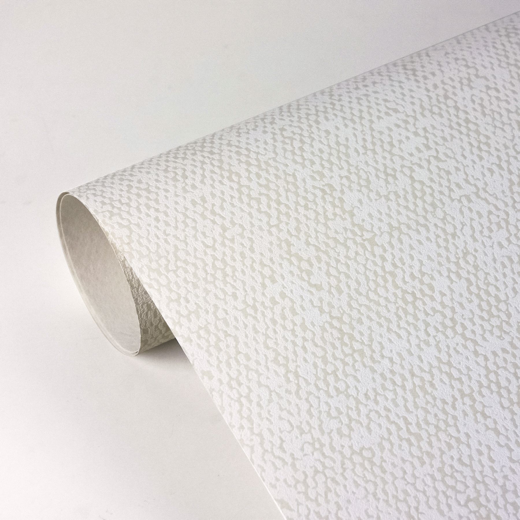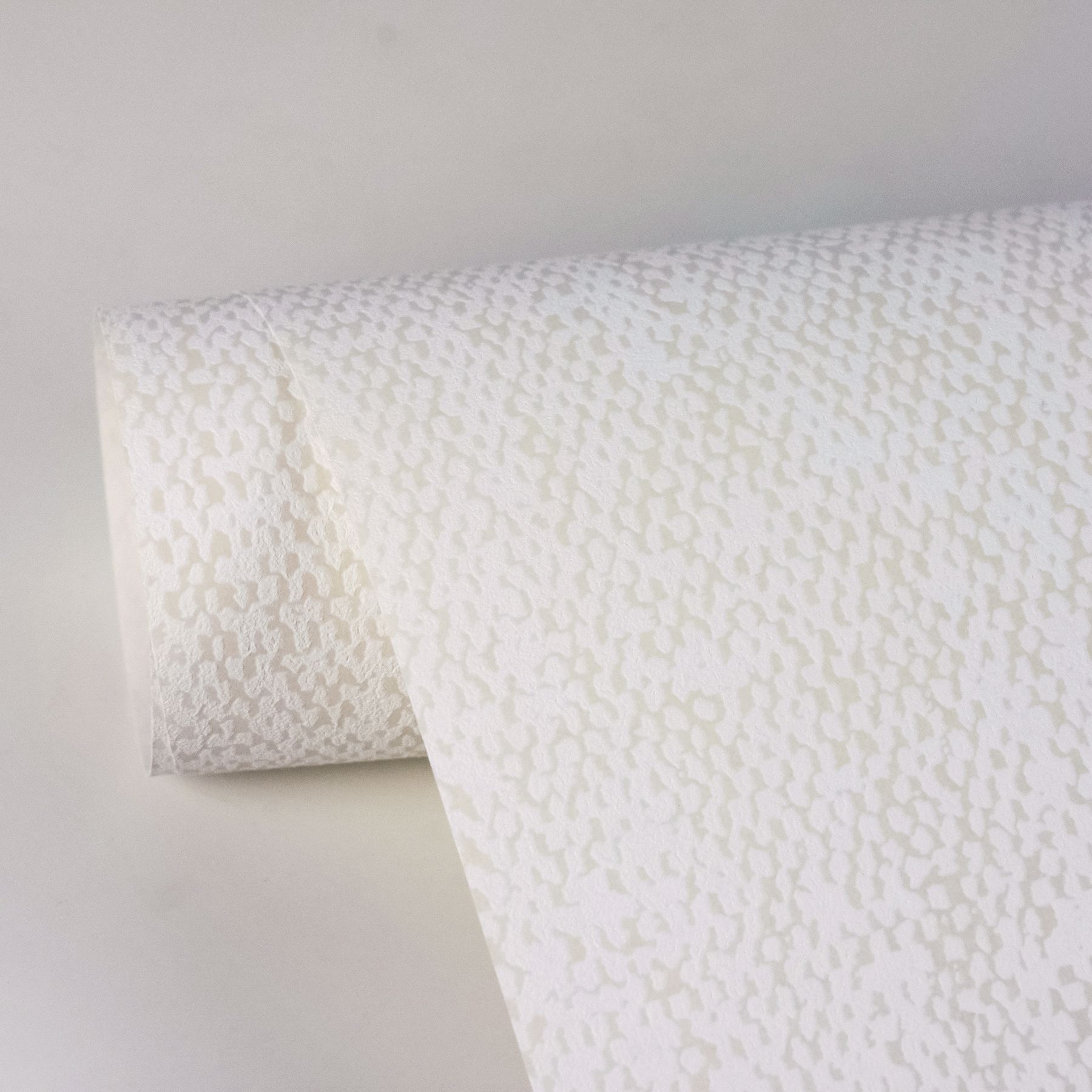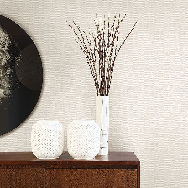 This wallpaper provides a neutral, versatile accent that will complement any room’s decor. A tweed-like pattern in raised white ink covers a light beige background. Tweed is an unpasted, non woven wallpaper.