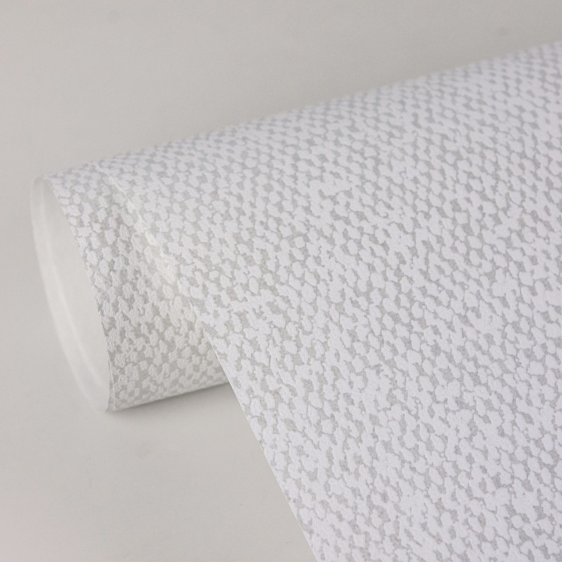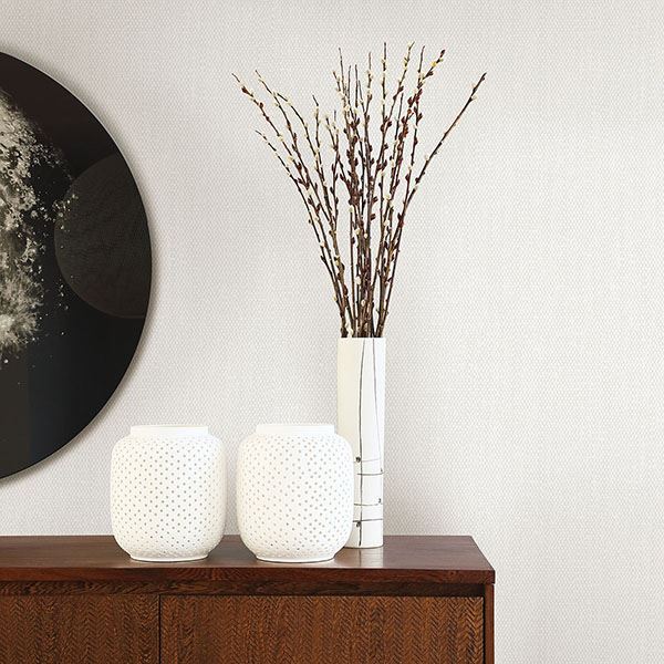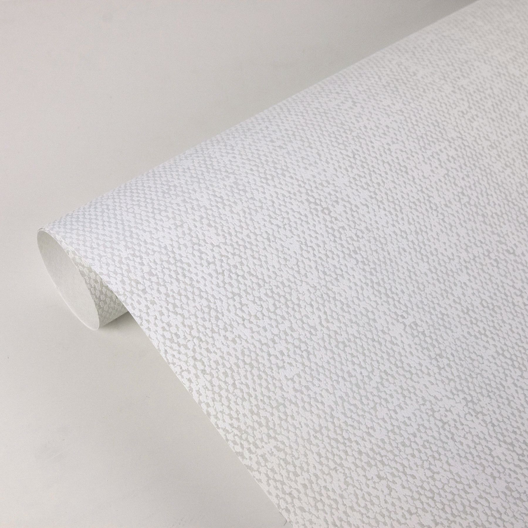 A light grey background reveals its true metallic silver ink when the light catches it. The tweed-like texture is a subtle way to add depth to walls. Tweed is an unpasted, non woven wallpaper.