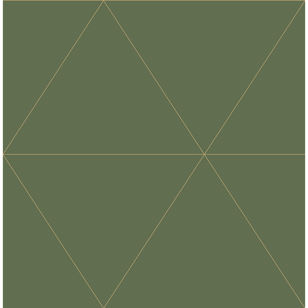 A chic and earthy green is subtly embellished with thin golden lines. The simple triangular grid adds minimalist elegance to walls. Twilight is an unpasted, acrylic coated wallpaper.