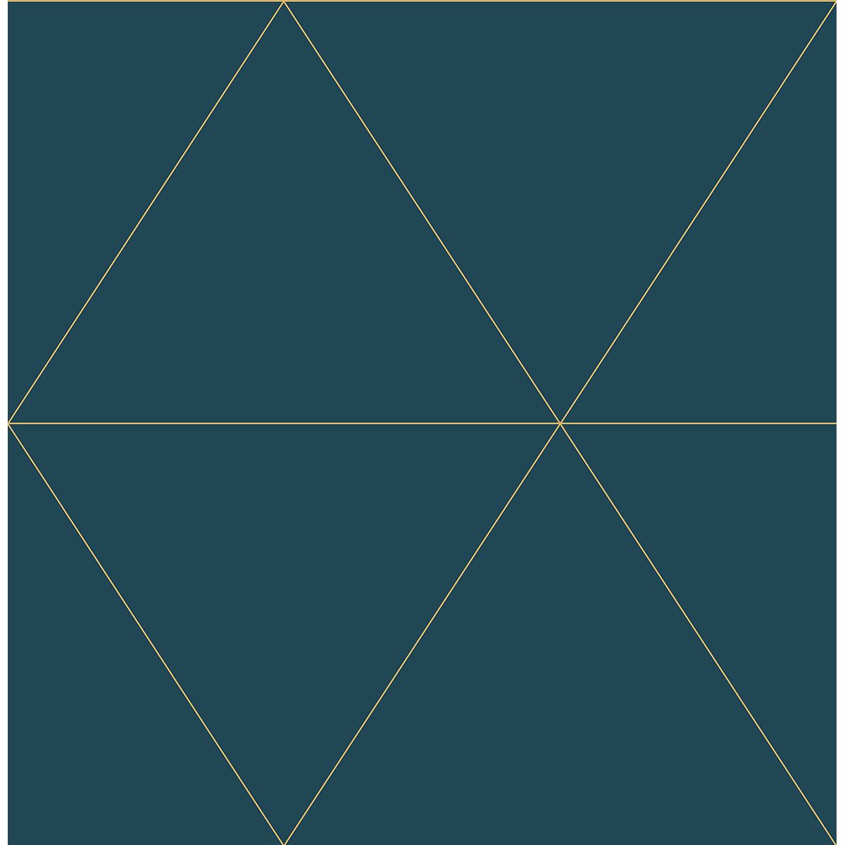 A captivating jewel tone, this dark teal wallpaper is distinguished and modern. Metallic gold lines create a triangular pattern. Twilight is a non woven, unpasted wallpaper.