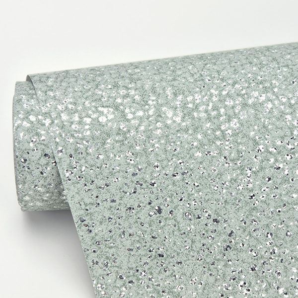 A very light seafoam is the base for this dazzling pattern. Flecks of holographic foil cover the wallpaper. Twinkle is a holographic foil non woven, unpasted wallpaper.