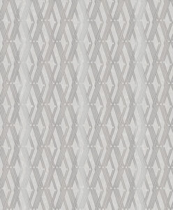 Enjoy elegant dimension with this elevated geometric design. Thin, dark grey ribbons imbued with a silver sheen form linked diamond chains along a distressed grey backdrop. Ushas is an unpasted, non woven wallpaper.