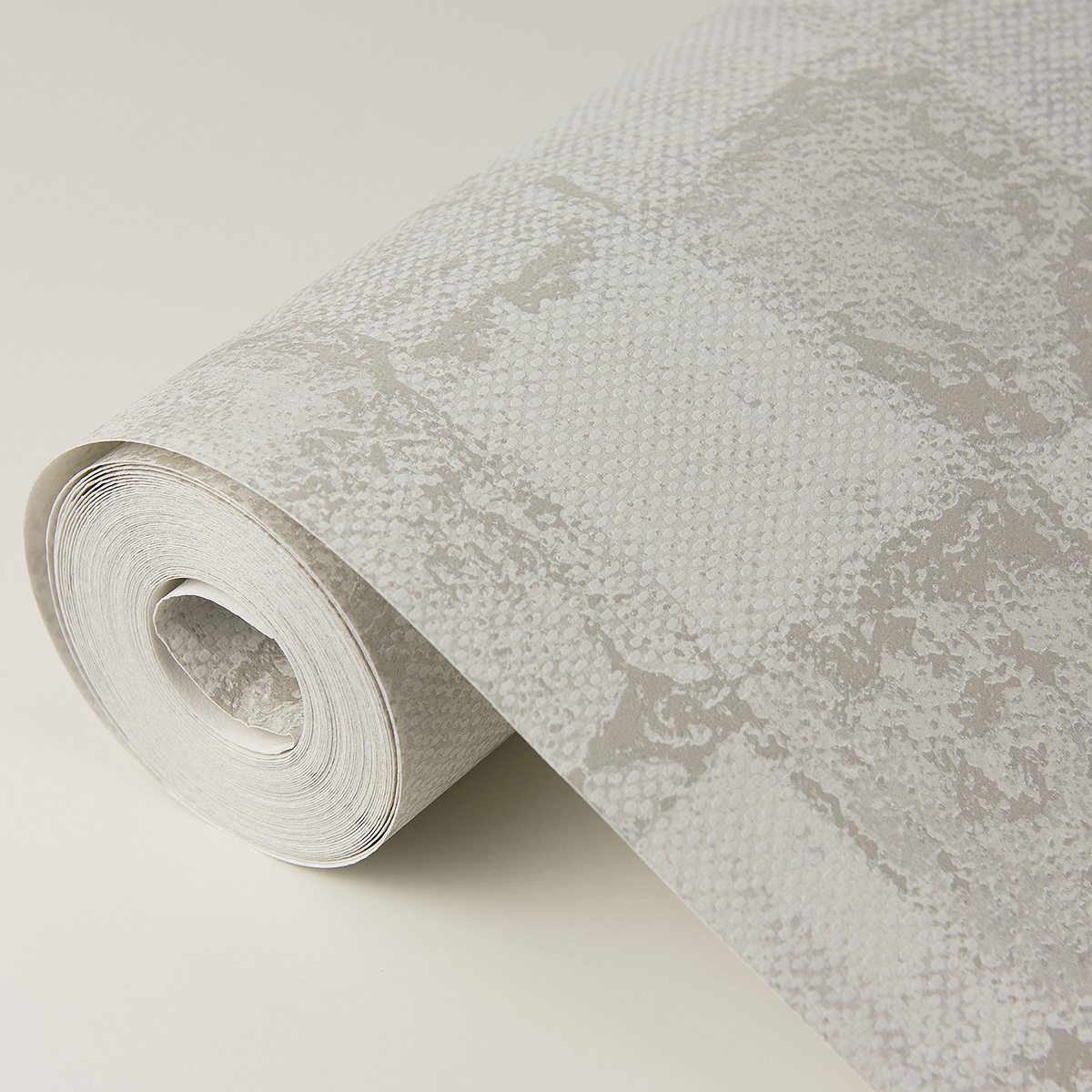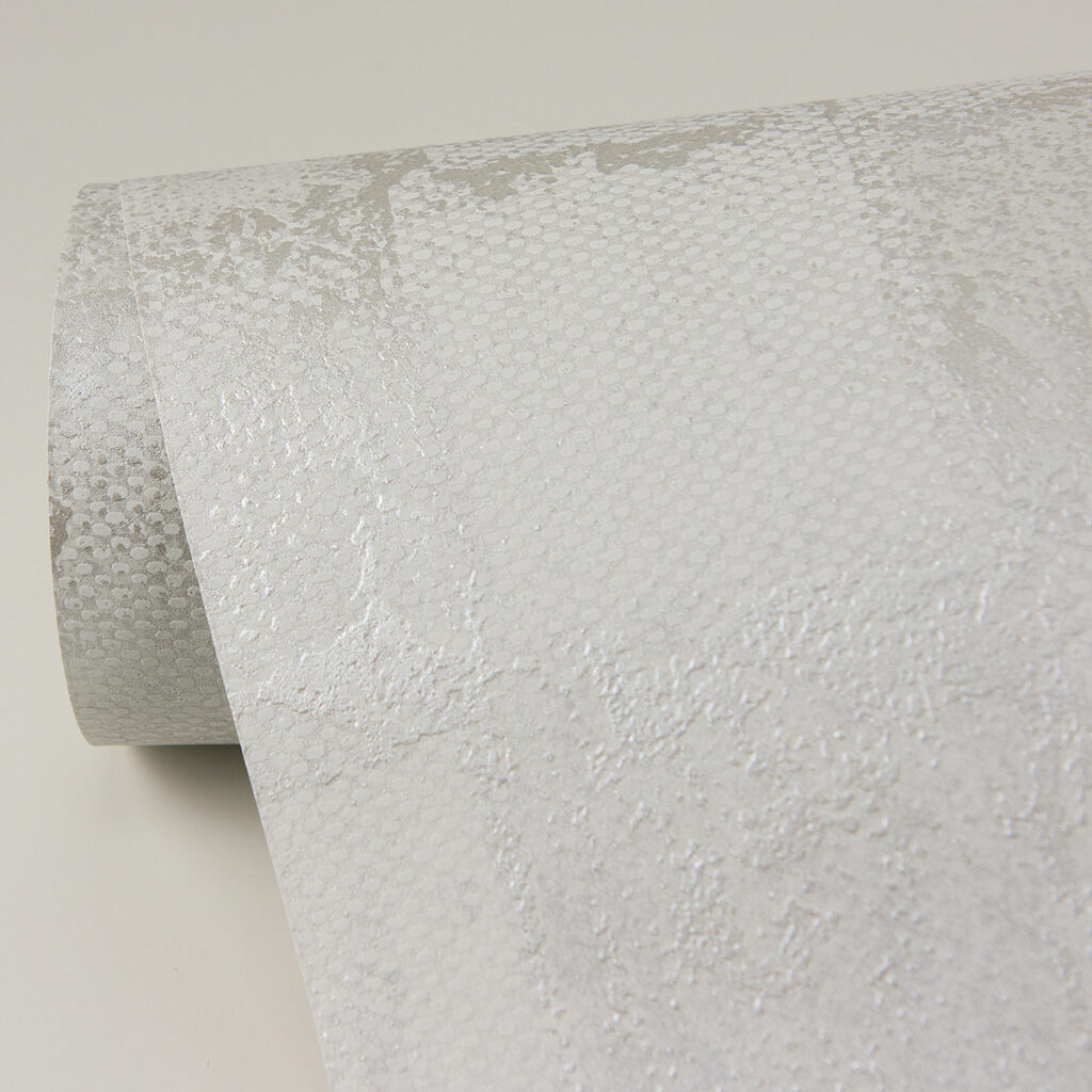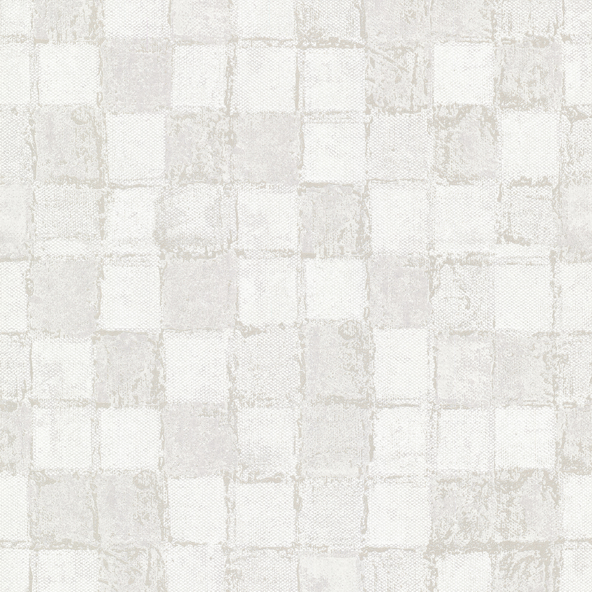 This modern geometric wallpaper is infused with both textural accents and a metallic glow. The white and light grey squares are overlaid with delicate raised ink detailing and brushed with a soft platinum finish. Varak is an unpasted, non woven wallpaper.