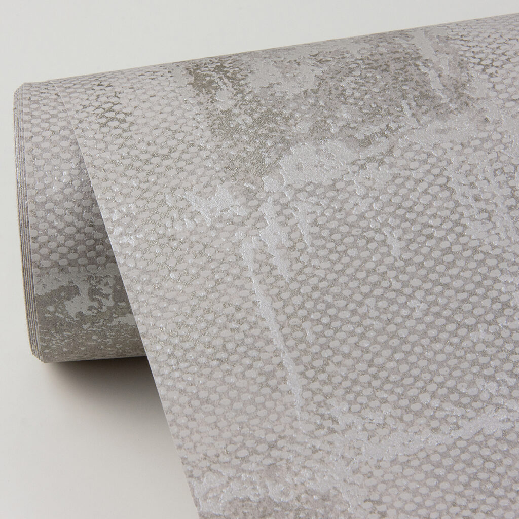 Enjoy the modern and textural appeal of this geometric wallpaper. Grey squares are infused with textural detailing, a glowing silver backdrop providing subtle flair. Varak is an unpasted, non woven wallpaper.