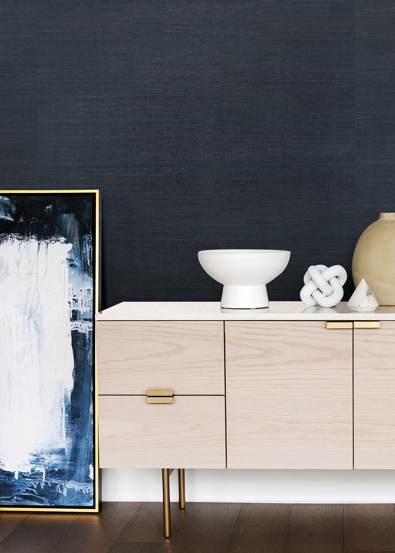 The tight weave of this indigo grasscloth will bring dramatic elegance to any space. The strands of grass are dyed an array of deep blue that’s enhanced by a glossy, light-catching finish. Victoria is an unpasted, grasscloth wallpaper.
