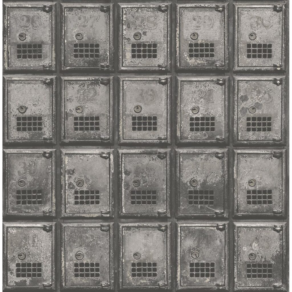 Bring the past to life in your home with this unique P.O. box print design. This industrial wallpaper has a photorealistic look with shining silver accents for a metallic appearance.