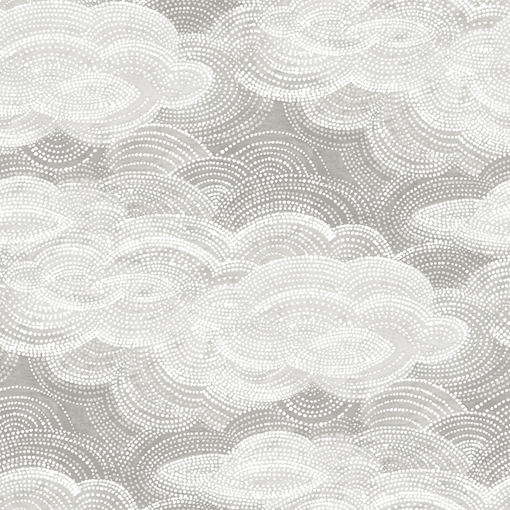 Create an utterly moody yet dreamy space with this cloud wallpaper. Fluffy cumulous formations are shaped by elaborate white dotting against a variegated grey backdrop. Vision is an unpasted, non woven wallpaper measuring 27 inches wide by 27 feet long, covering approximately 60.8 square feet per roll.