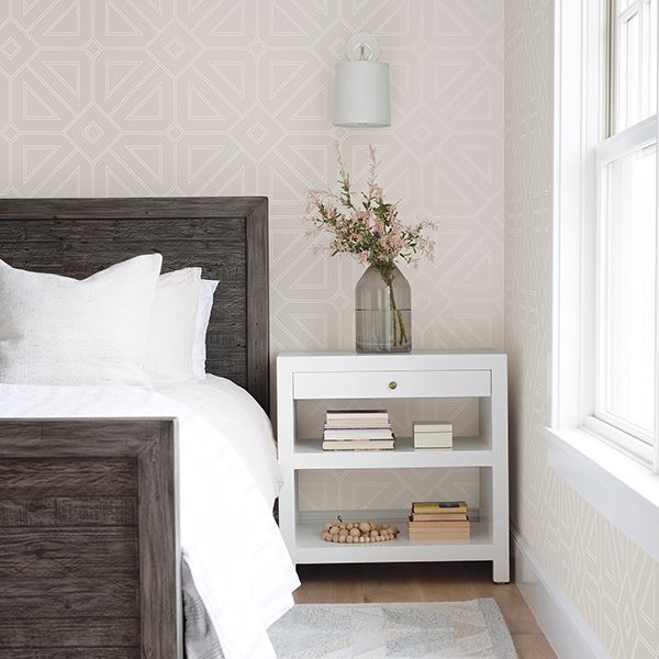 Voltaire Platinum Beaded Geometric Wallpaper