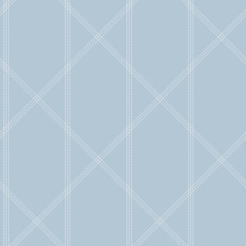 This simple and refined trellis design adds timeless embellishment to your interiors. A pale blue backdrop is decorated with lines of white stitching that form sleek, geometric panels. Walcott is an unpasted, non woven wallpaper.