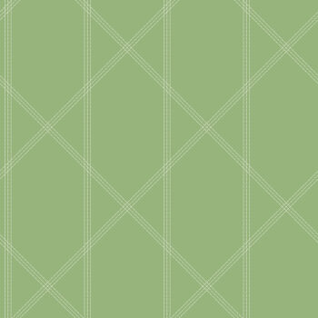 Brighten your home with this cheerful and timeless trellis wallpaper. A warm, light green backdrop is embellished with white stitched seams that create a chic, geometric design. Walcott is an unpasted, non woven wallpaper.