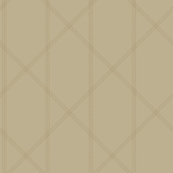 Warm up your walls with the timeless and refined look of this trellis wallpaper. A rich taupe backdrop is detailed with delicate metallic gold stitching to create geometric panels. Walcott is an unpasted, non woven wallpaper.