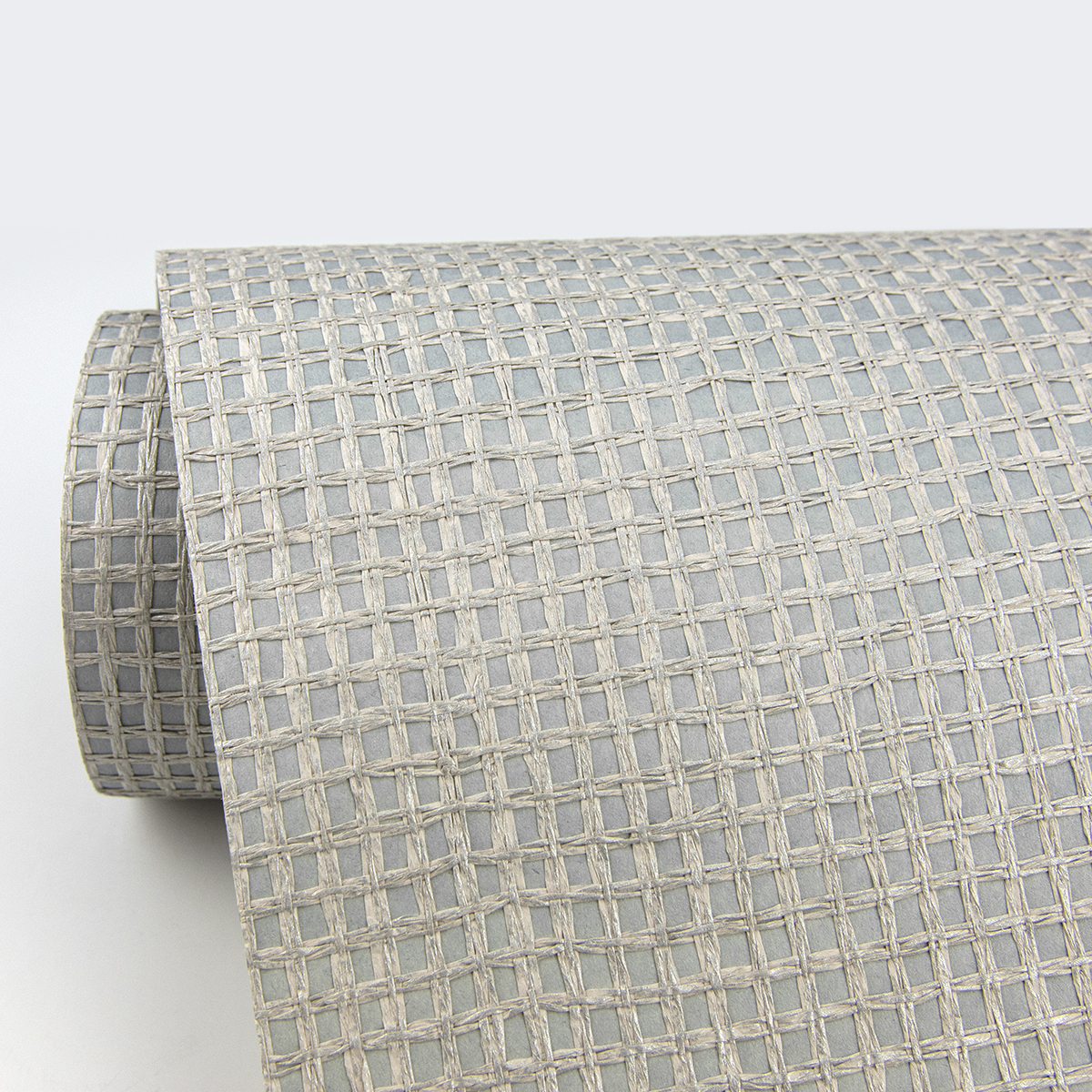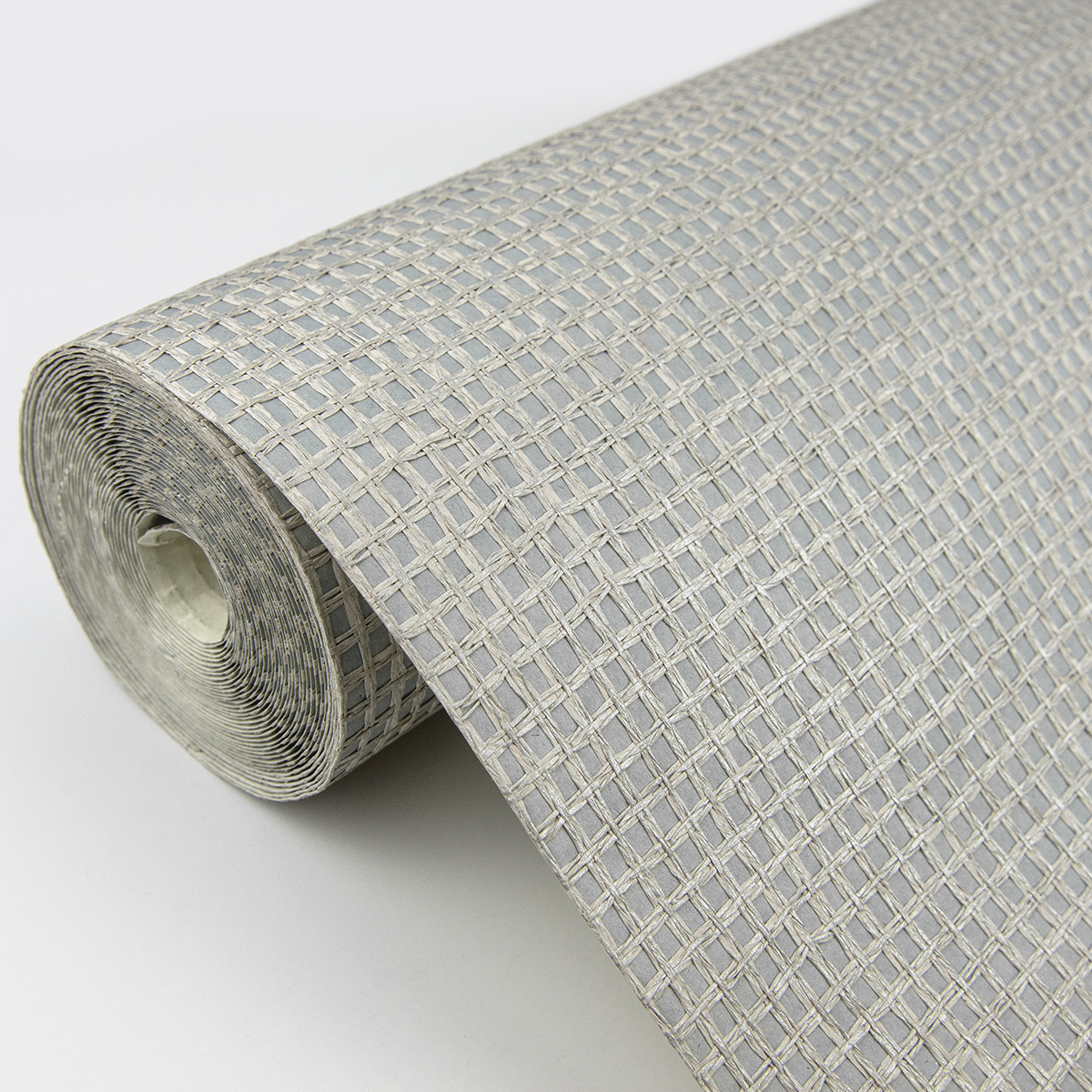 Glazed with a metallic finish, beige fibers softly shimmer against a grey background. Its loosely woven design has an effortlessly chic style.Wancahi is an unpasted, paper weave wallpaper.
