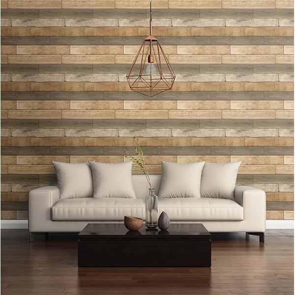 This reclaimed wood wallpaper has a warm collection of neutral planks. From golden honey, to brown taupe, to a light brown, this design will match everything.