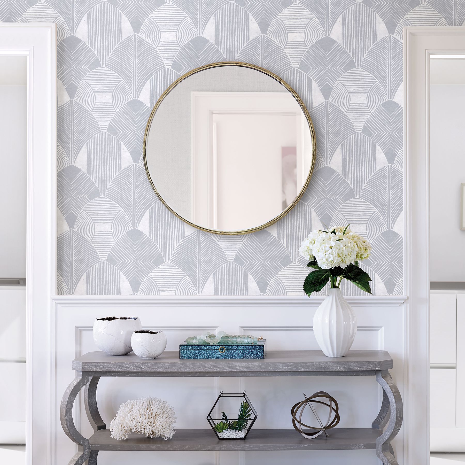 Westport Pewter Geometric Wallpaper- Scott Living