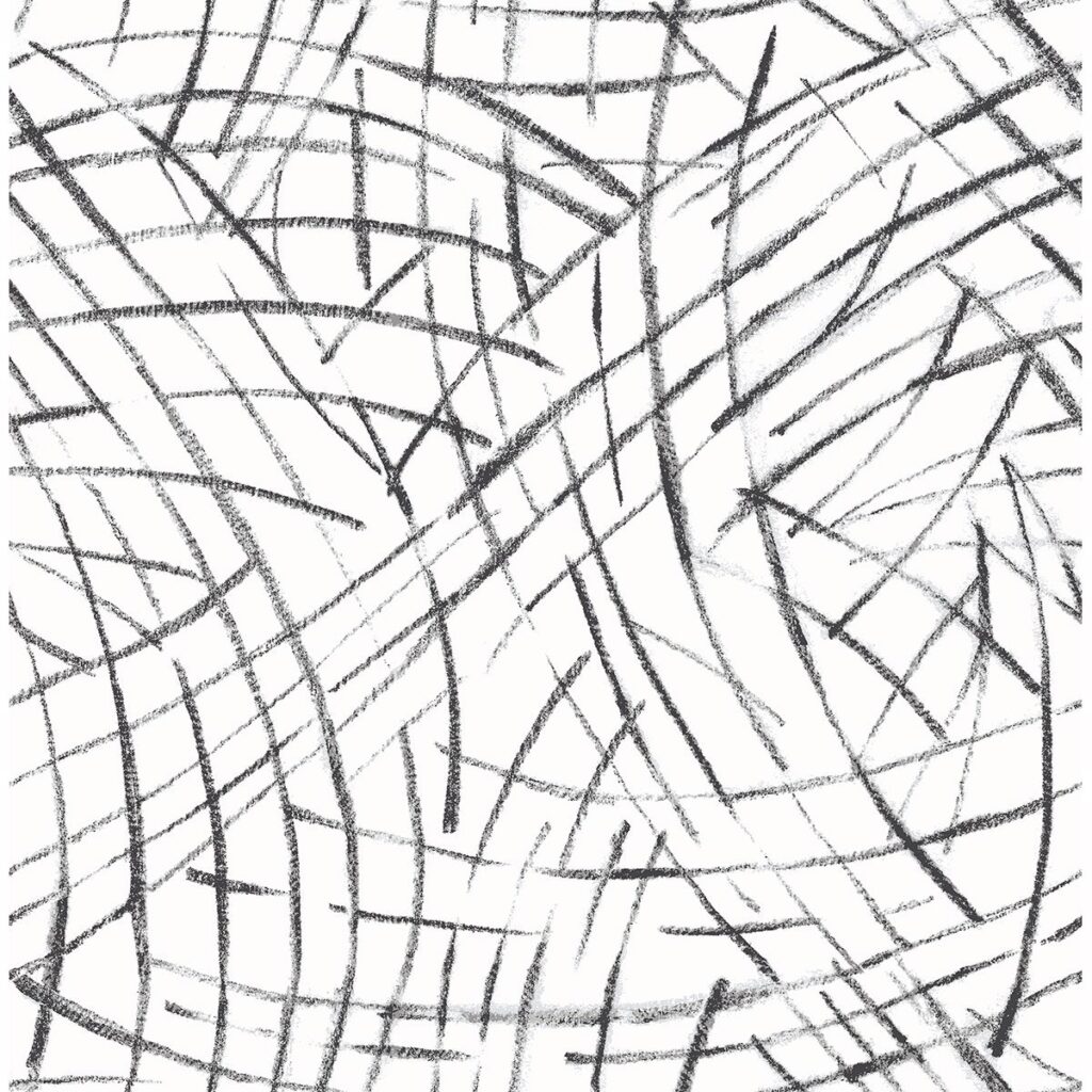 Sophisticated with an abstract flair, this wallpaper is effortlessly chic. Black brush strokes frolic across a crisp white background. Willy Nilly is an unpasted, non woven wallpaper.