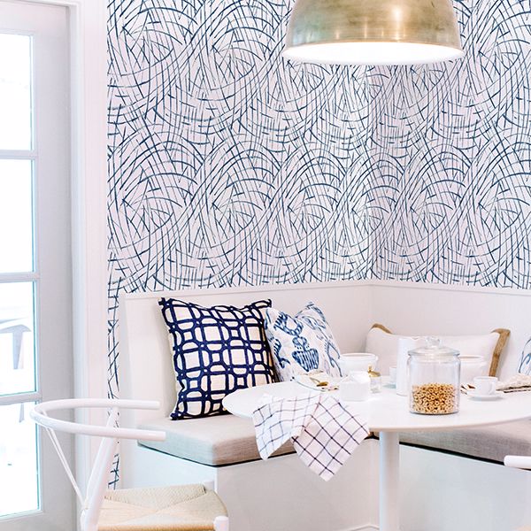 Breathe a new life into walls with this intriguing and exiting design. Blue brushstrokes leap across a white background, creating an abstract print with a dimensional effect. Willy Nilly is an unpasted, non woven wallpaper.