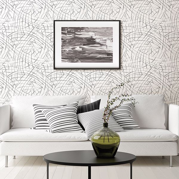 Perfect for the contemporary home, grey brushstrokes leap across a white background in this abstract design. Its painterly style has a dimensional effect. Willy Nilly is an unpasted, non woven wallpaper.