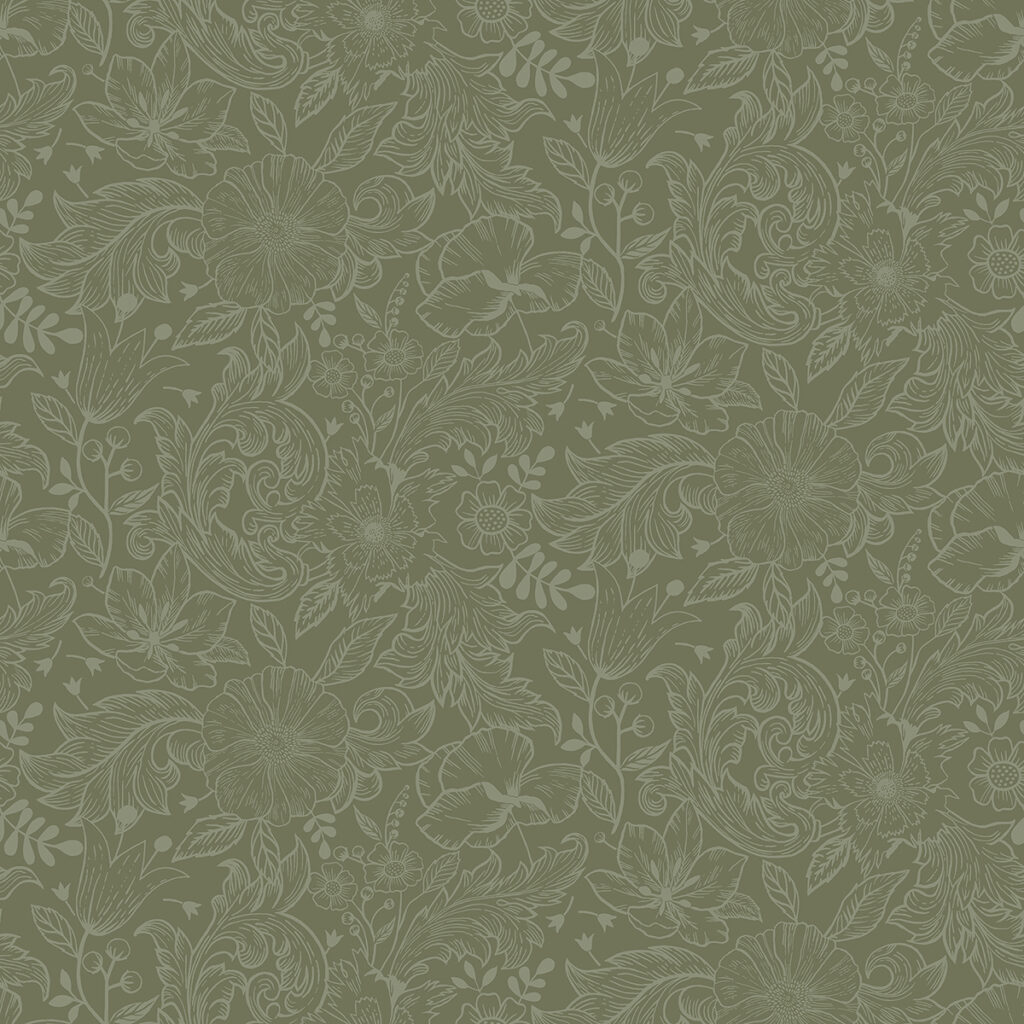 Add delicate woodland elegance to your walls with this gorgeous Scandinavian-inspired botanical wallpaper. The illustrated design features an array of flowers and embellished leaves, all outlined in light green against a moss green backdrop. Wilma is an unpasted, non woven wallpaper.