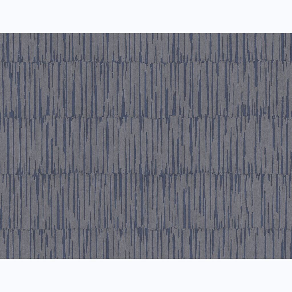 Perfect for contemporary homes, this distressed wallpaper has a refined energy. Pewter highlights add a touch of glamour to its navy design. Zandari is an unpasted, acrylic coated paper wallpaper.