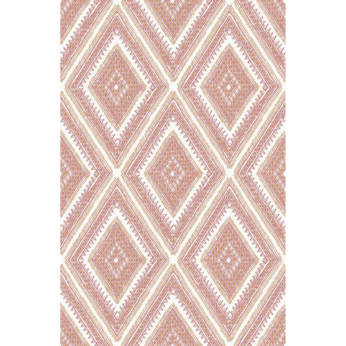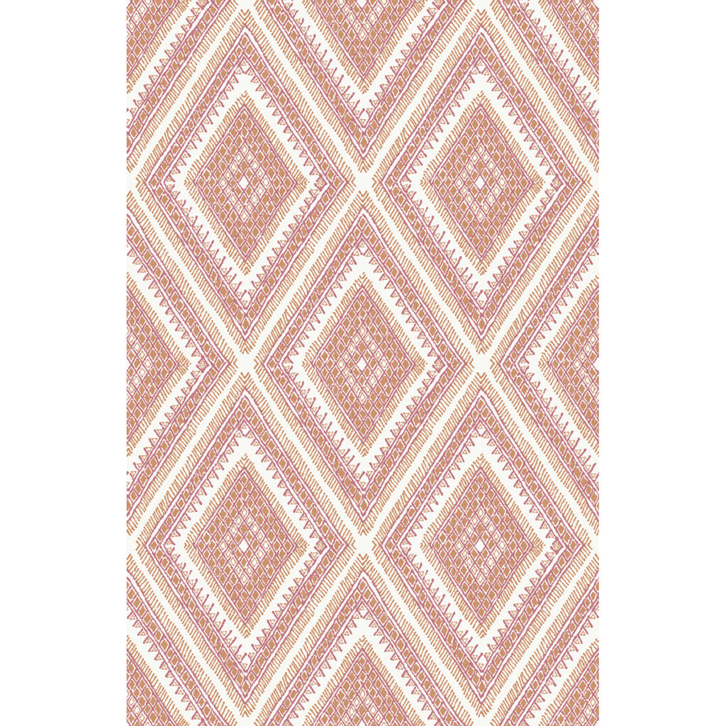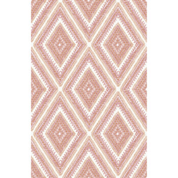 This cheerful, tribal-inspired geometric wallpaper features large diamonds formed from smaller shapes and dashed lines. The bohemian design is given additional dimension with a subtle overlay of raised inks that adds texture to the wallpaper. Zaya is an unpasted, non woven wallpaper.