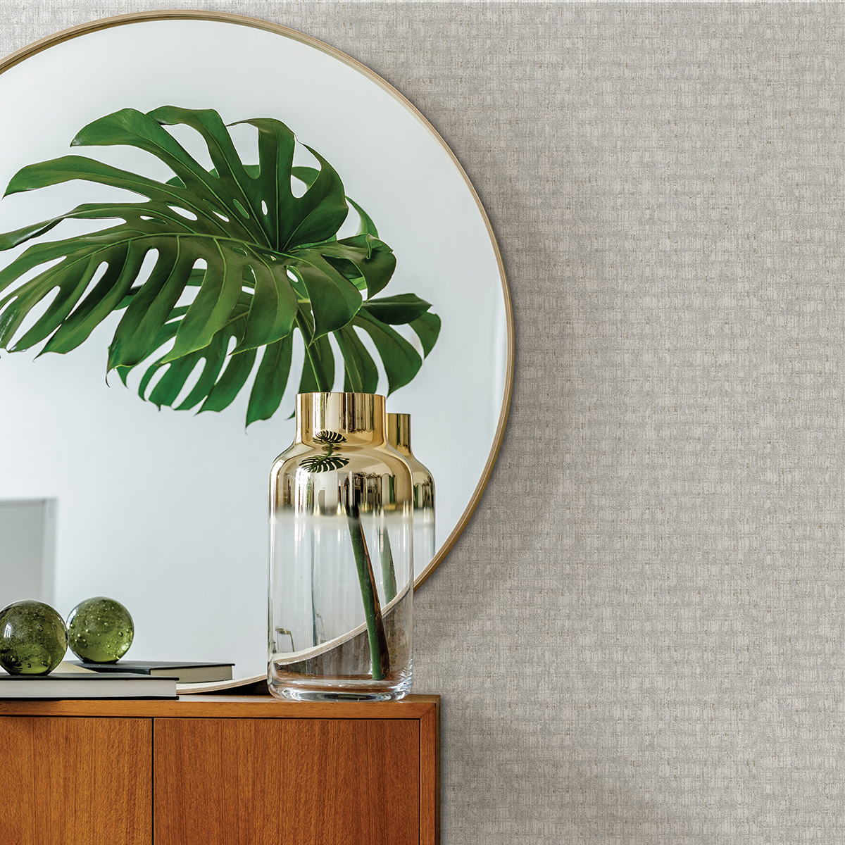 Bring the soft detailing of fabric to your walls. This wallpaper features delicate grey crosshatching against a shimmering silver backdrop for a soft yet dimensional look. Zeke is an unpasted, foil on non woven wallpaper.
