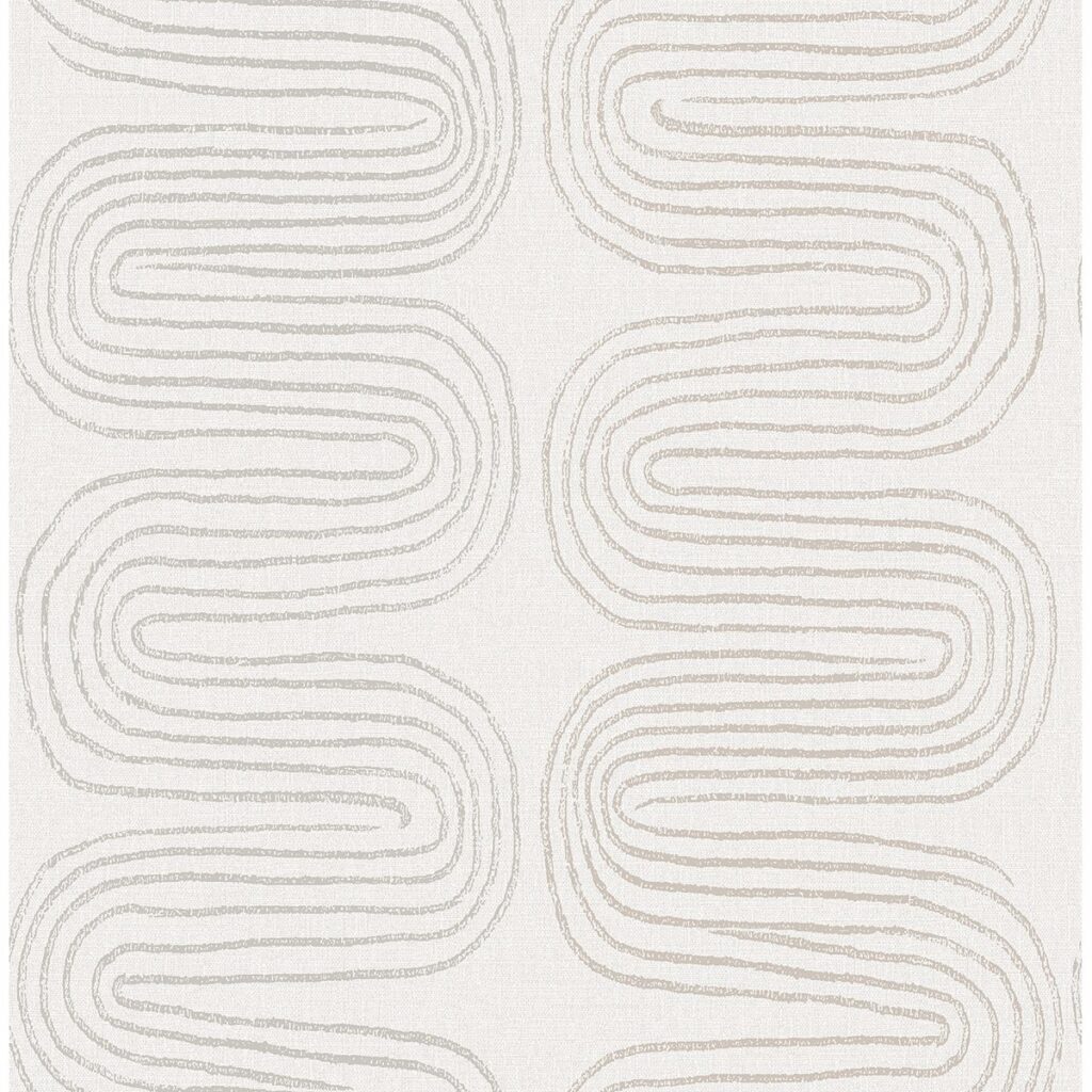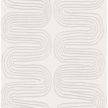 Simultaneously modern while harkening back to timeless organic forms, this eclectic wallpaper’s looping design will captivate. The abstract stripes of grey and taupe are printed with raised ink. Zephyr is an unpasted, non woven wallpaper.