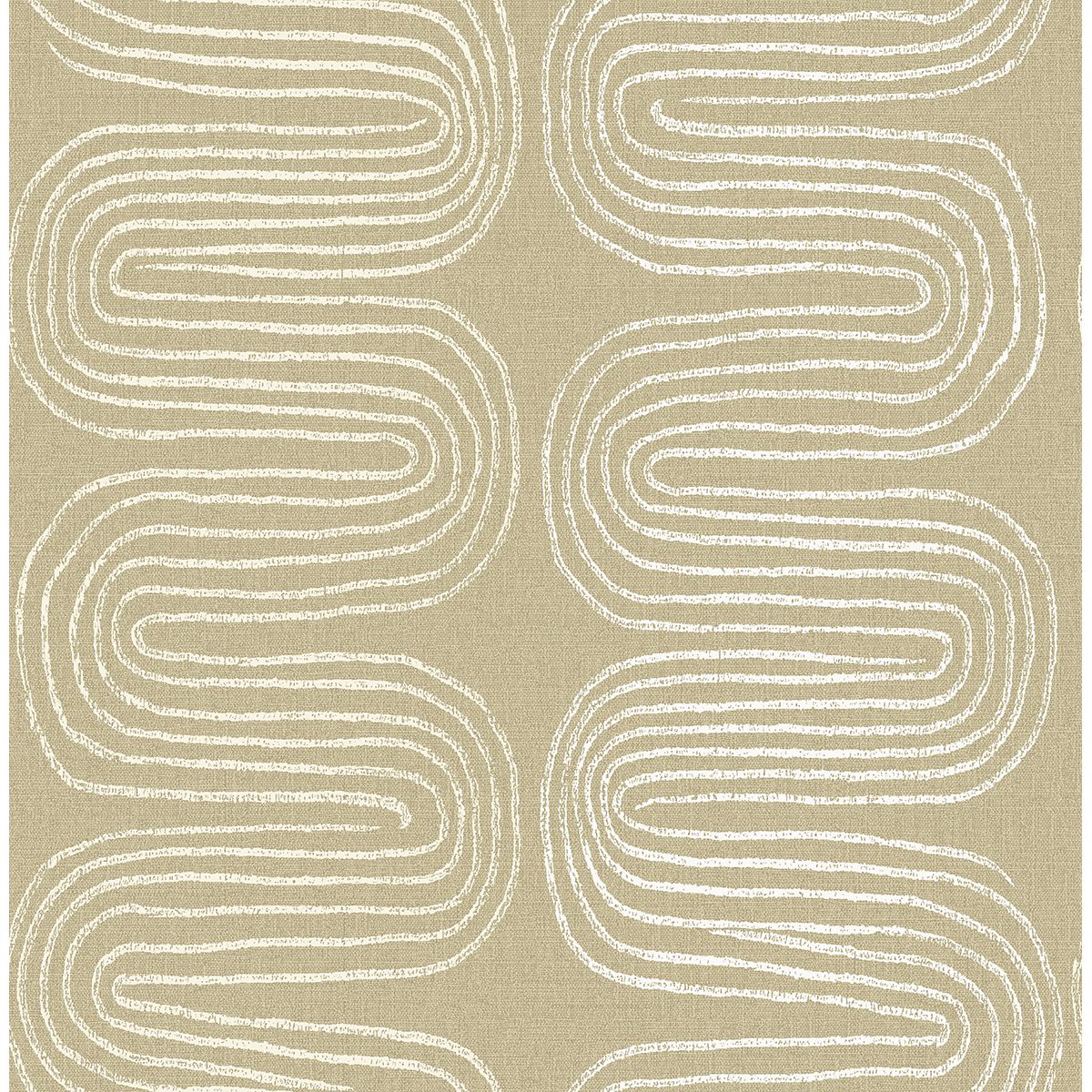 Like rake designs through the sand of a zen garden, lines curve into stripes over a honey background. The abstract pattern is printed in raised white ink for a textural feel. Zephyr is an unpasted, non woven wallpaper.