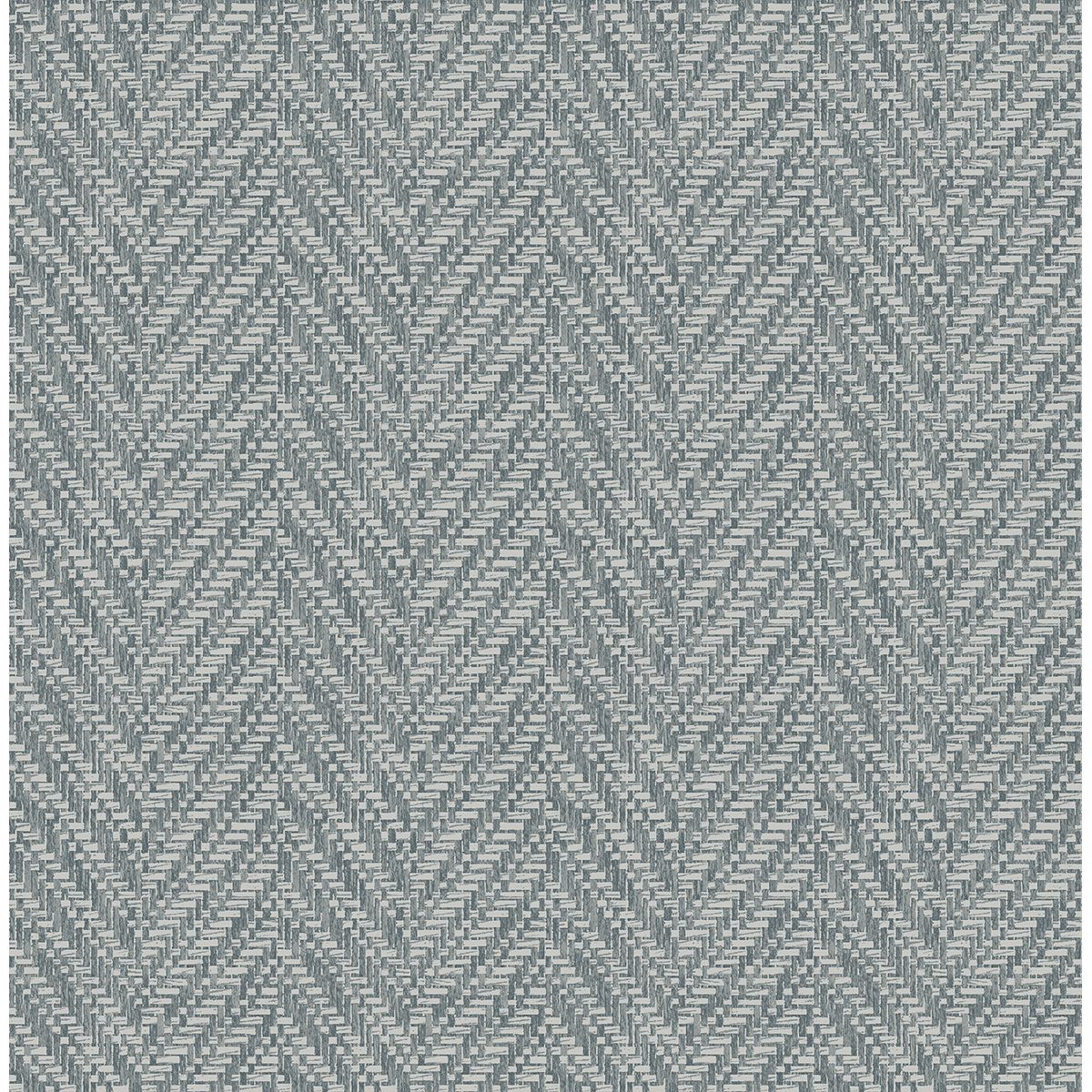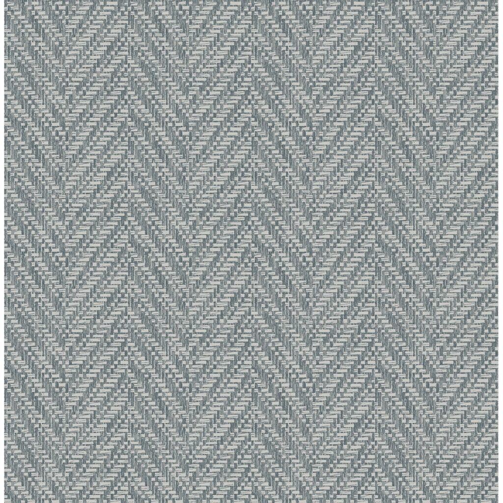 Herringbone and grasscloth combine for a stunning wallpaper with timeless appeal. Raised ink details accent the blue-toned faux woven. Ziggity is an unpasted, nonwoven wallpaper.