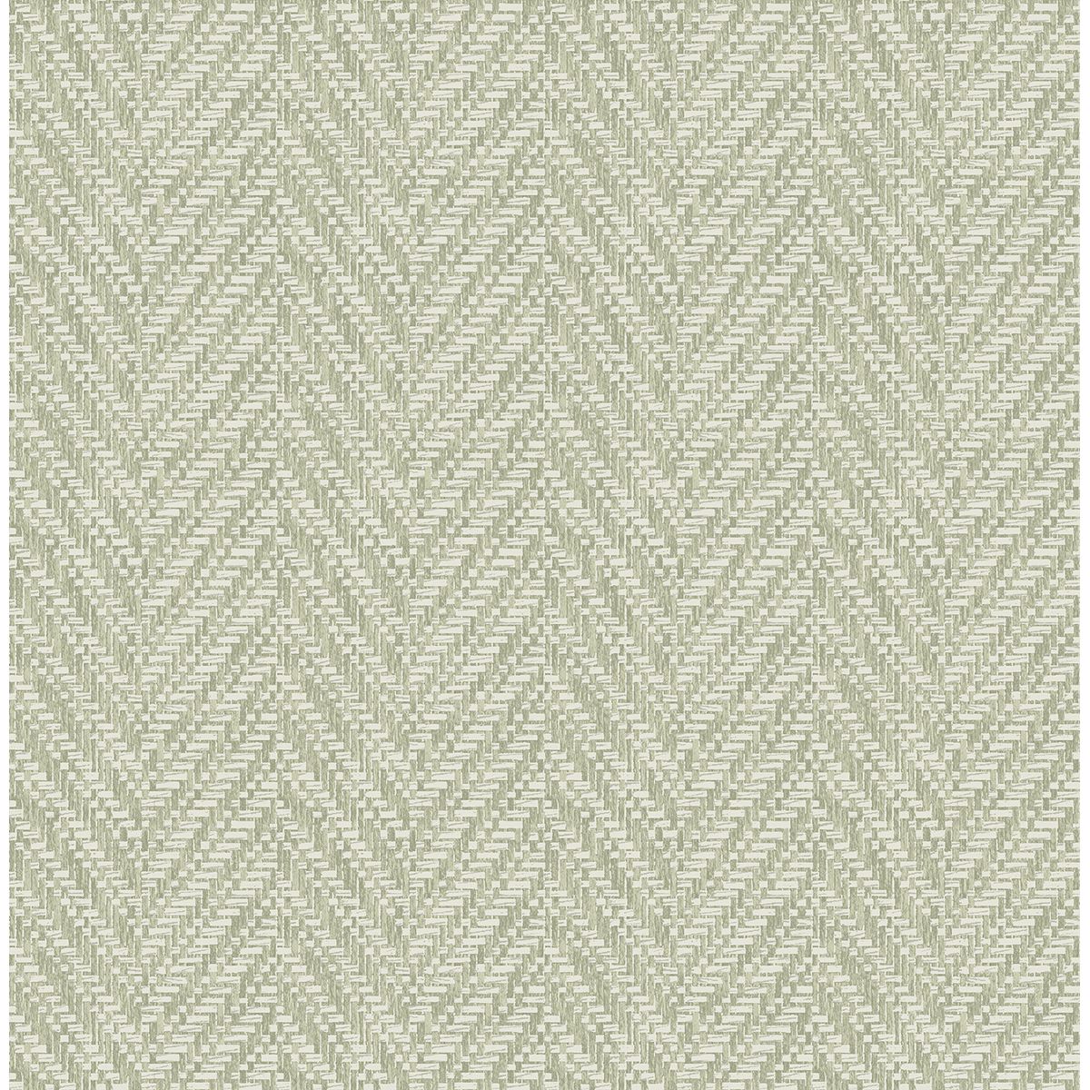 Herringbone and grasscloth combine for a stunning wallpaper with timeless appeal. Raised ink details accent the green-toned faux woven. Ziggity is an unpasted, nonwoven wallpaper.