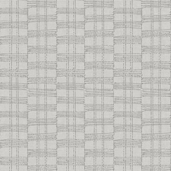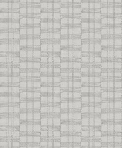 Transform your walls with the chic stylings of this striped wallpaper. This modern take on plaid features columns of alternating stripes inked in metallic silver against a grey faux linen backdrop. Zorya is an unpasted, foil on non woven wallpaper.